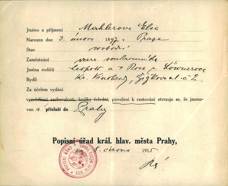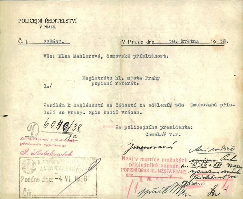 National archives Prague > Police Directorate Prague > 1931-1940 > M > Mahlerová Eliška