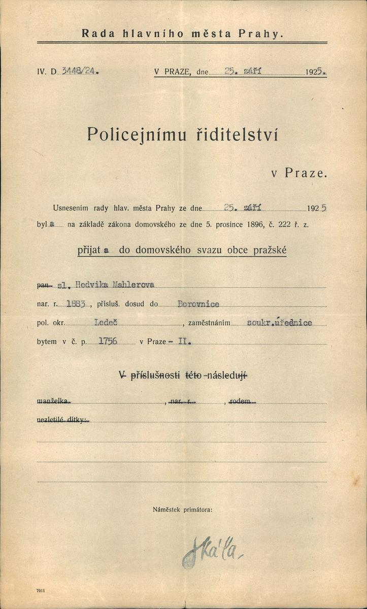 National archives Prague > Police Directorate Prague > 1931-1940 > M > Mahlerová Hedvika