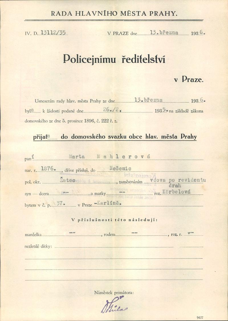 National archives Prague > Police Directorate Prague > 1931-1940 > M > Mahlerová Marta