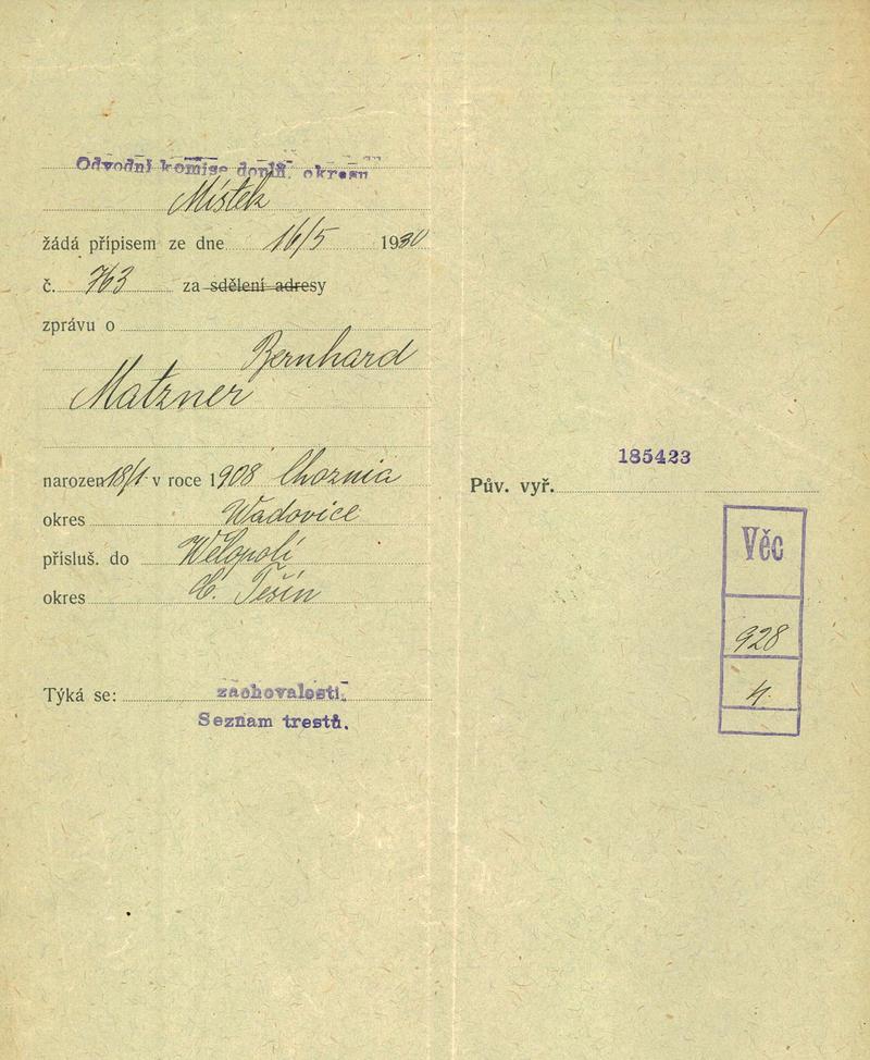 National archives Prague > Police Directorate Prague > 1931-1940 > M > Macner Bernard