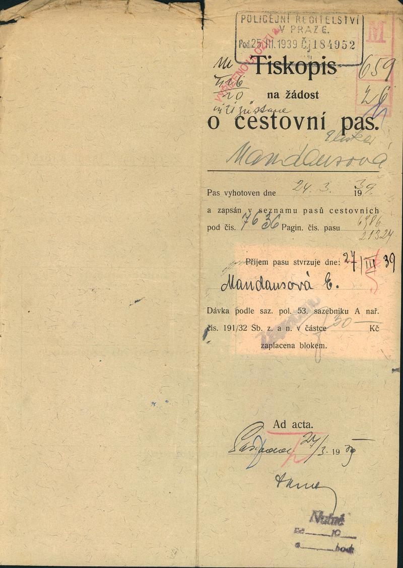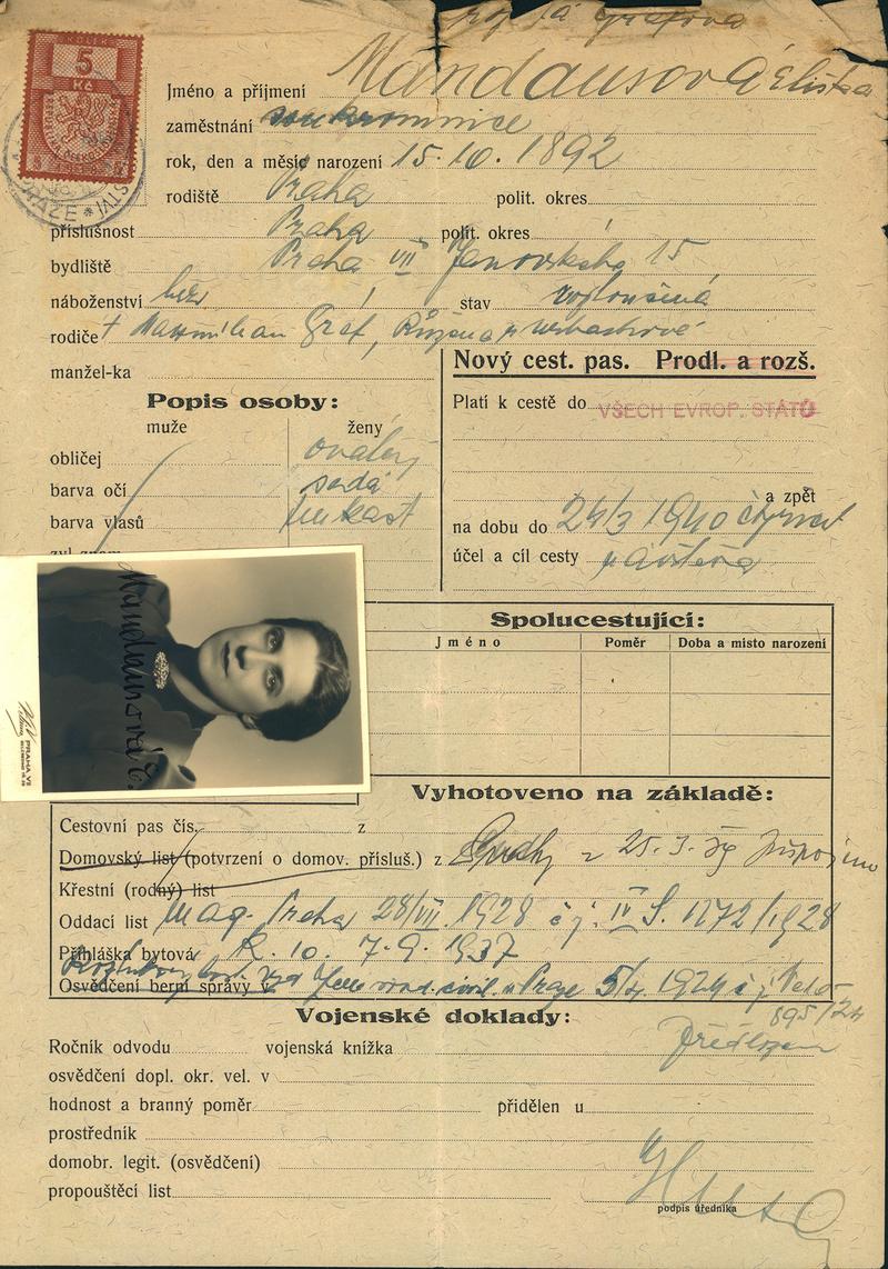 Mandausová Elsa: Žádost o vydání cestovního pasu