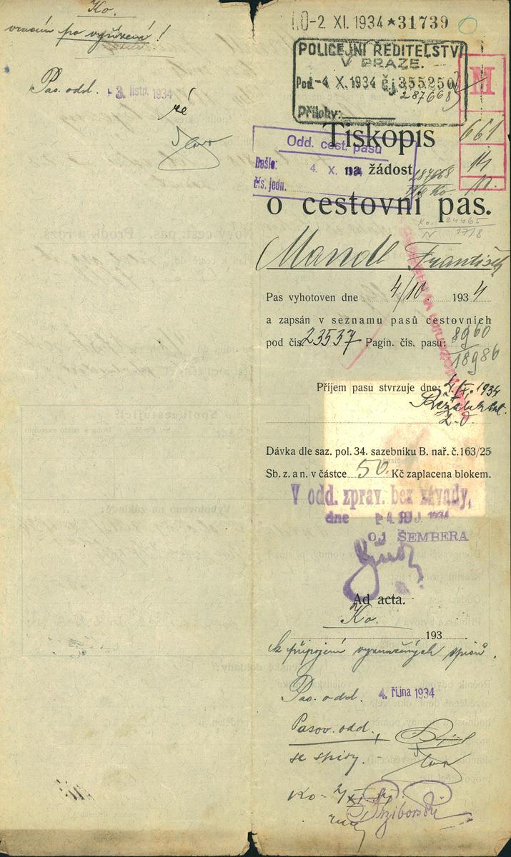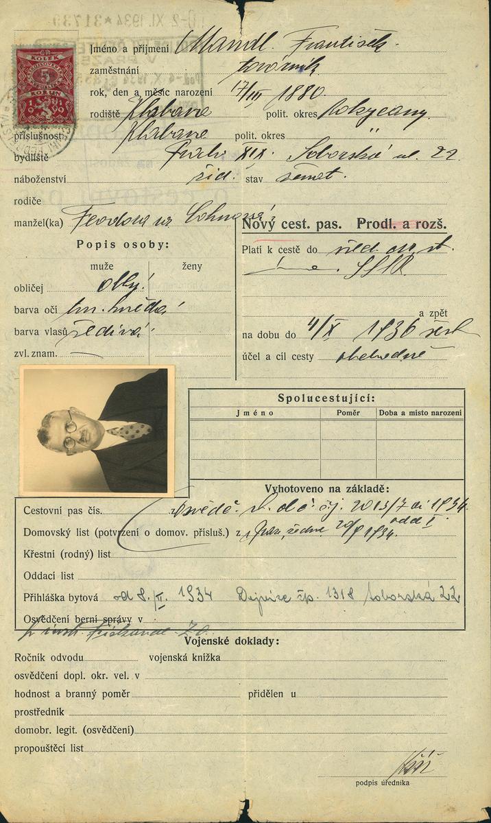 National archives Prague > Police Directorate Prague > 1931-1940 > M > Mandl František