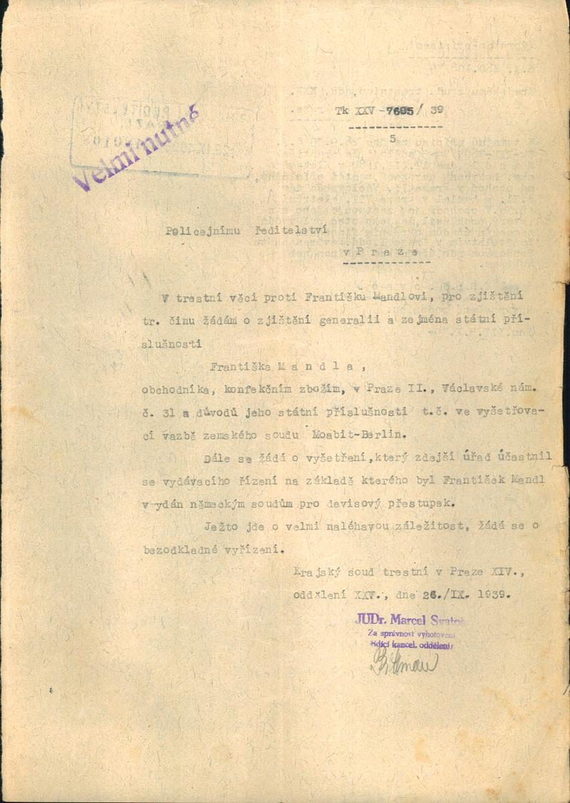 National archives Prague > Police Directorate Prague > 1931-1940 > M > Mandl František