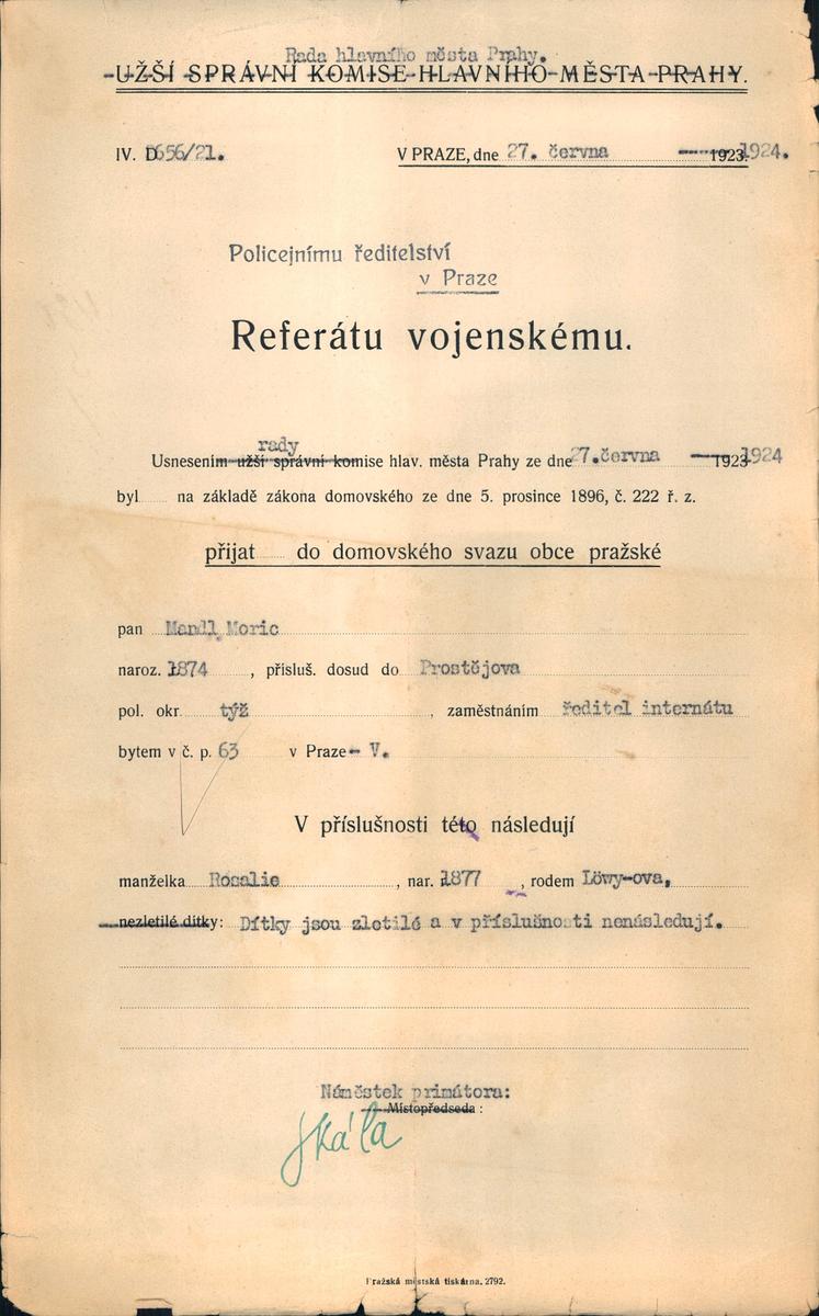 National archives Prague > Police Directorate Prague > 1931-1940 > M > Mandl Mořic