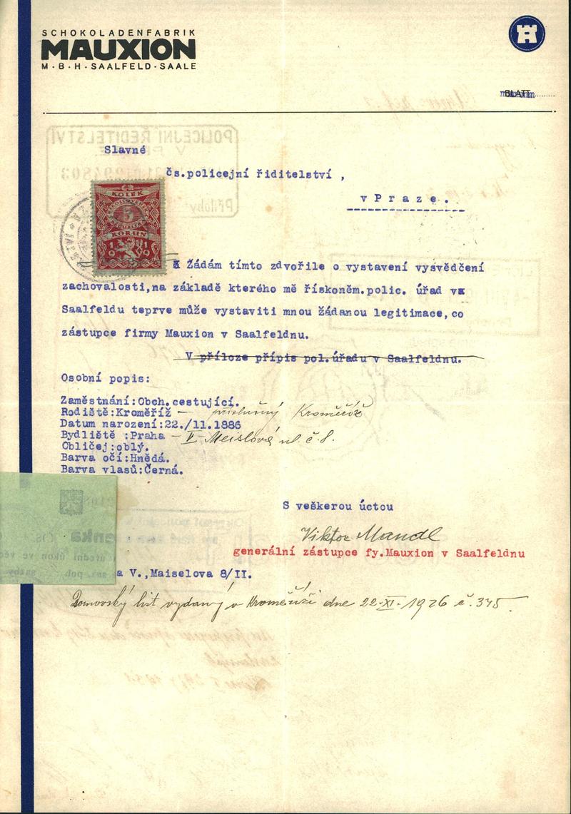 National archives Prague > Police Directorate Prague > 1931-1940 > M > Mandl Viktor