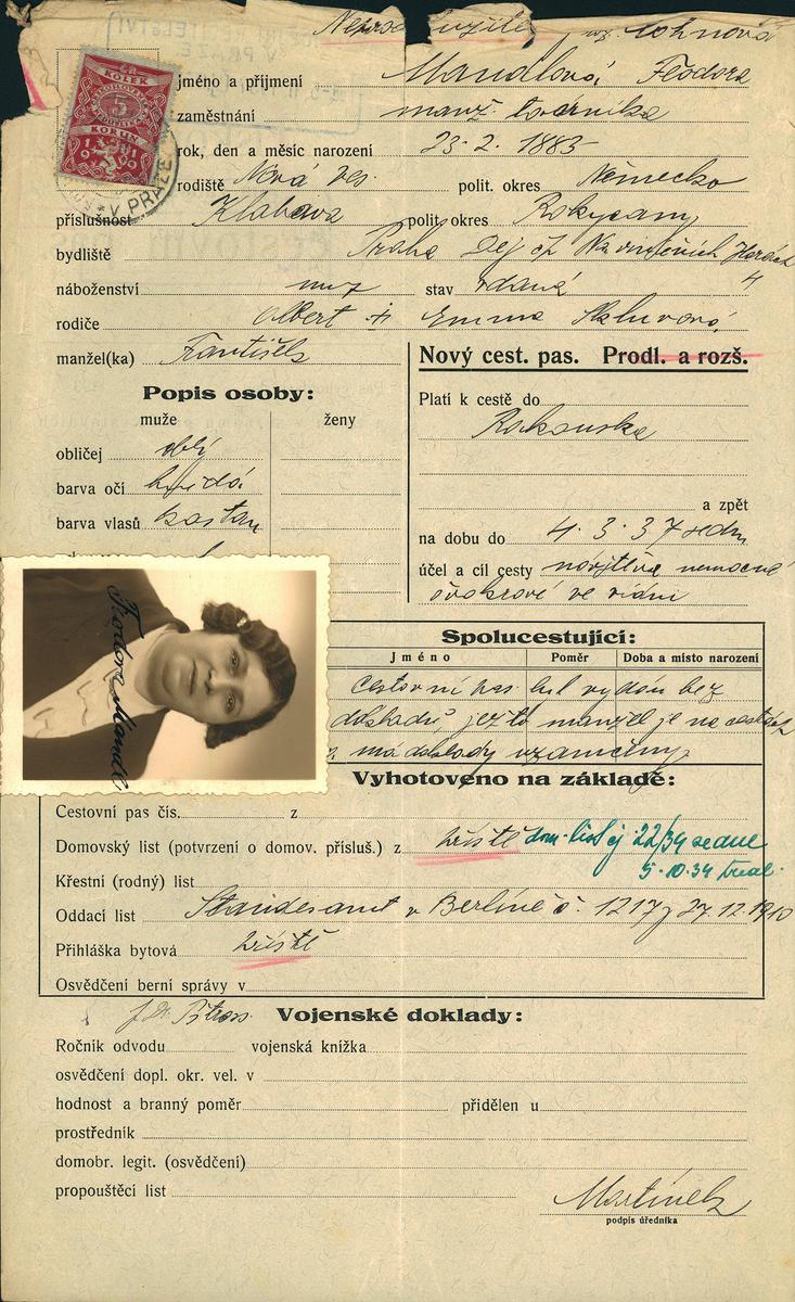 Mandlová Feodora: Žádost o vydání cestovního pasu