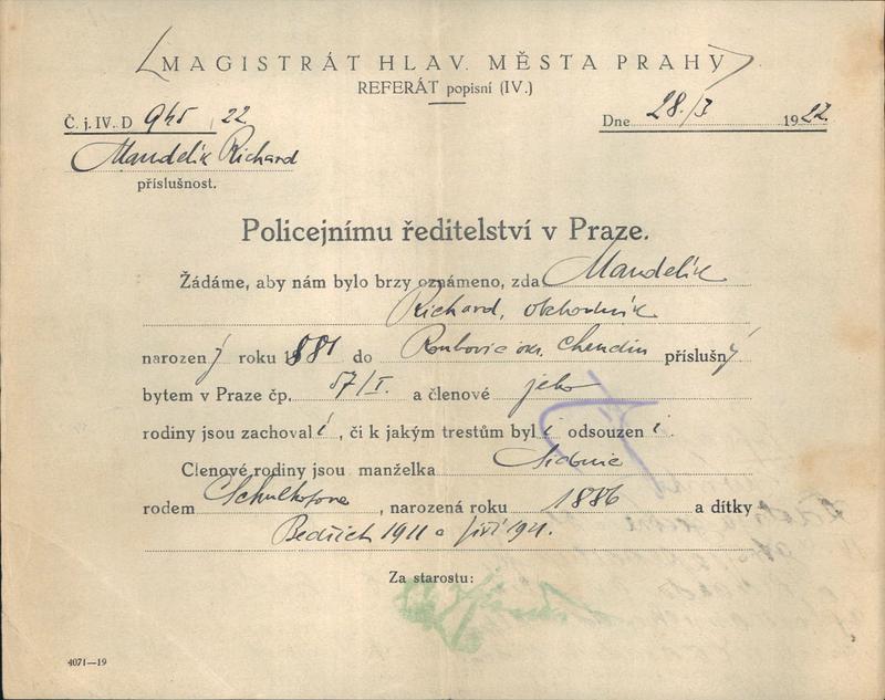 National archives Prague > Police Directorate Prague > 1931-1940 > M > Mandelik Richard