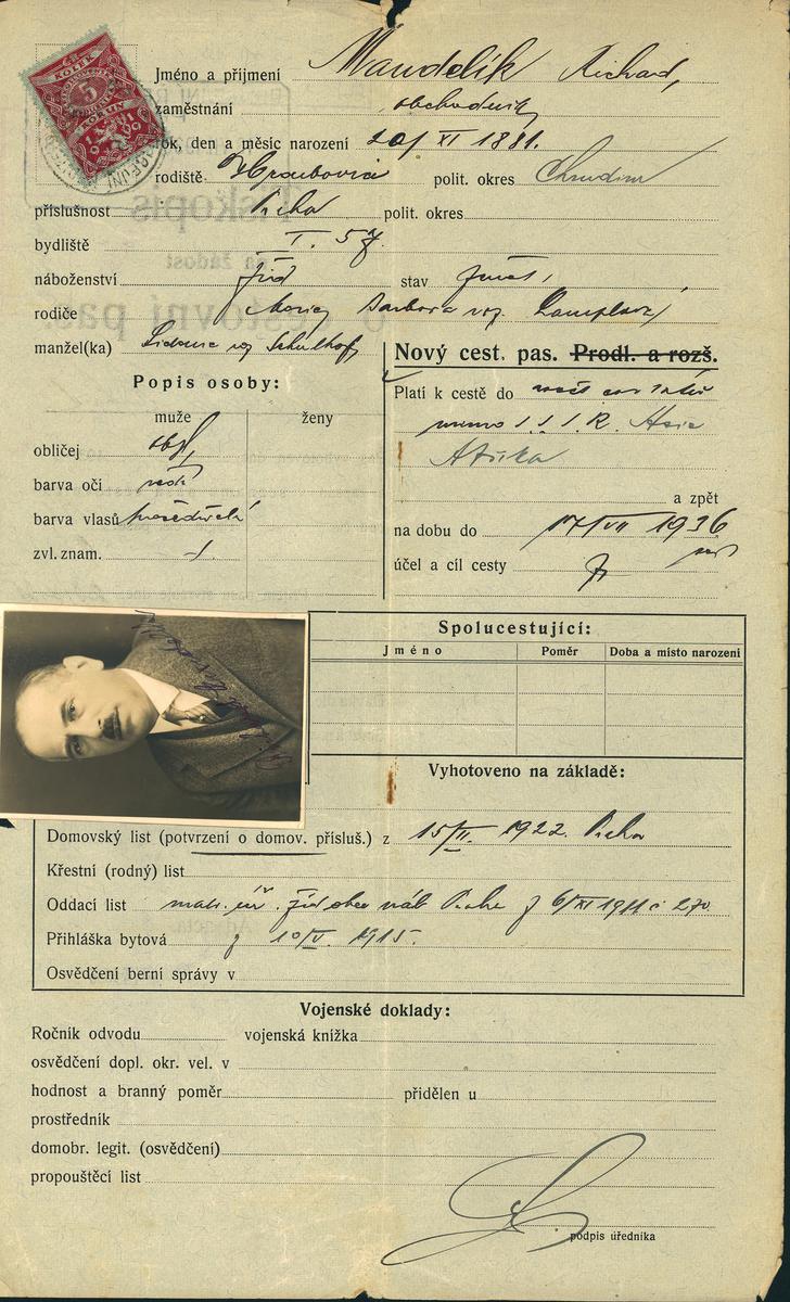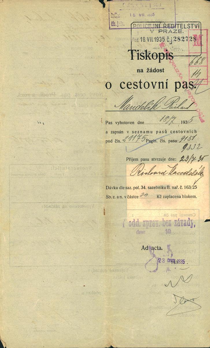 Mandelik Richard: Žádost o vydání cestovního pasu