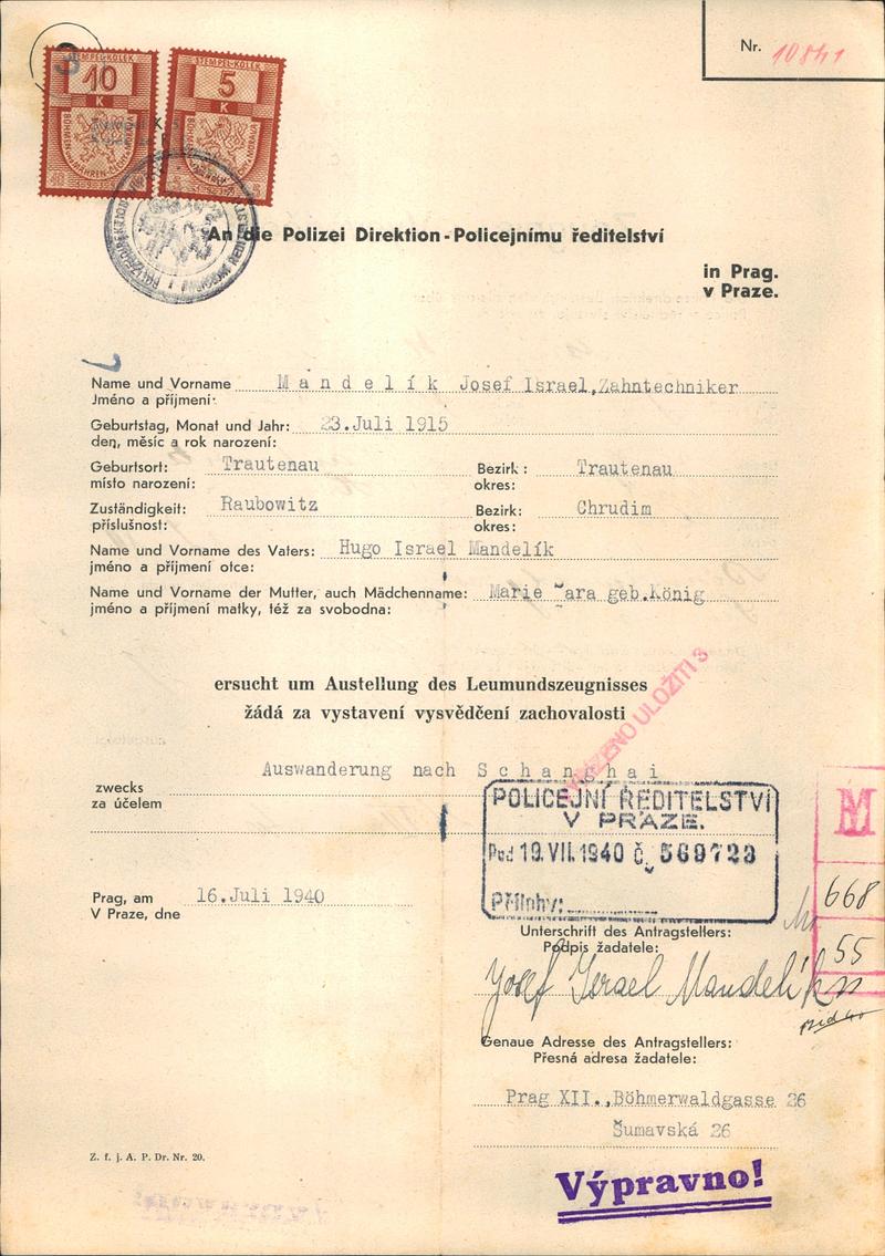 National archives Prague > Police Directorate Prague > 1931-1940 > M > Mandelik Josef