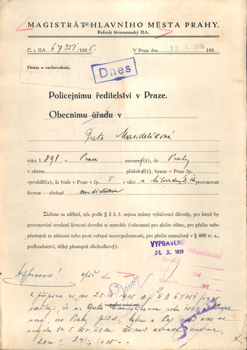 National archives Prague > Police Directorate Prague > 1931-1940 > M > Mandeliková Greta
