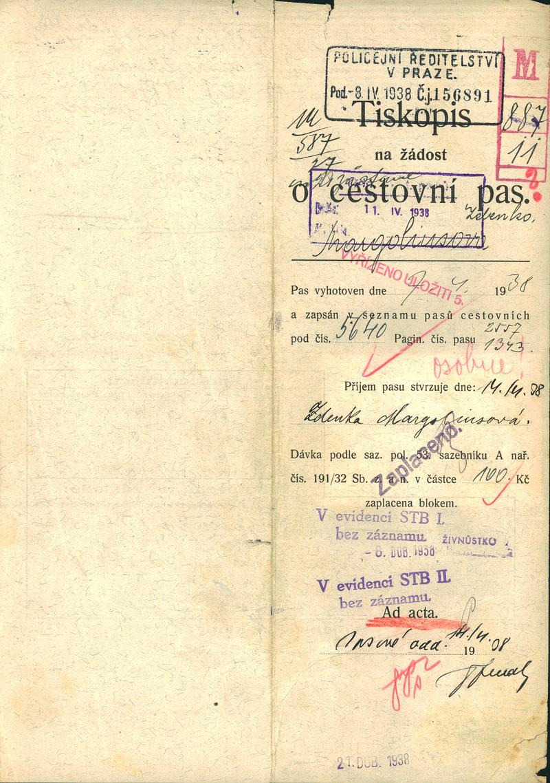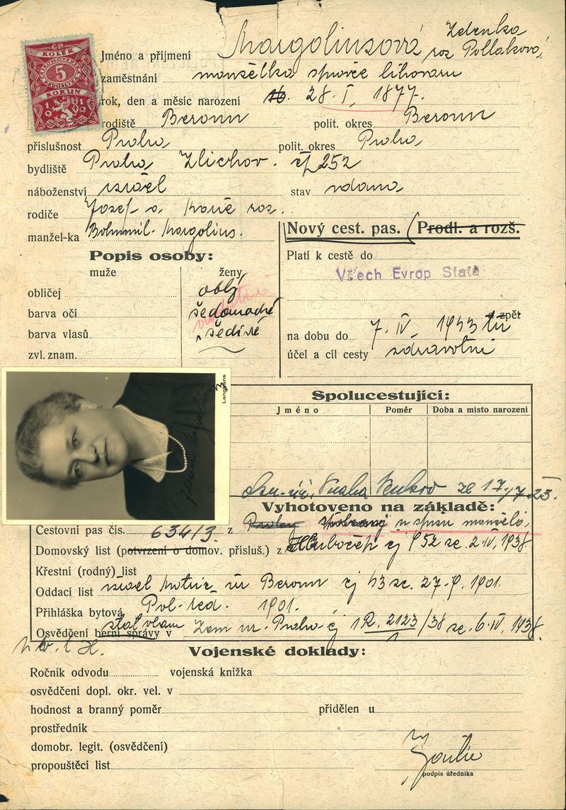 Margoliusová Zděnka: Žádost o vydání cestovního pasu