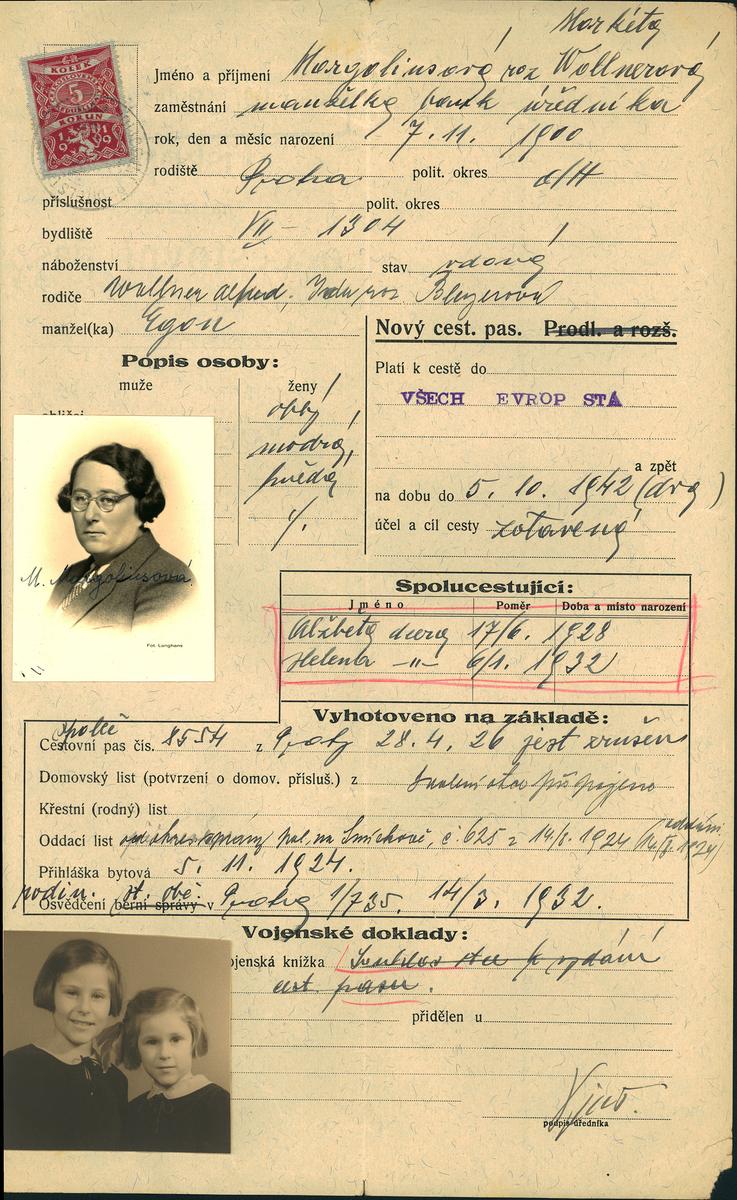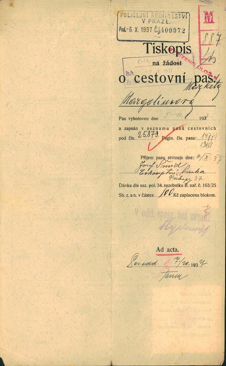 Margoliusová Markéta: Žádost o vydání cestovního pasu