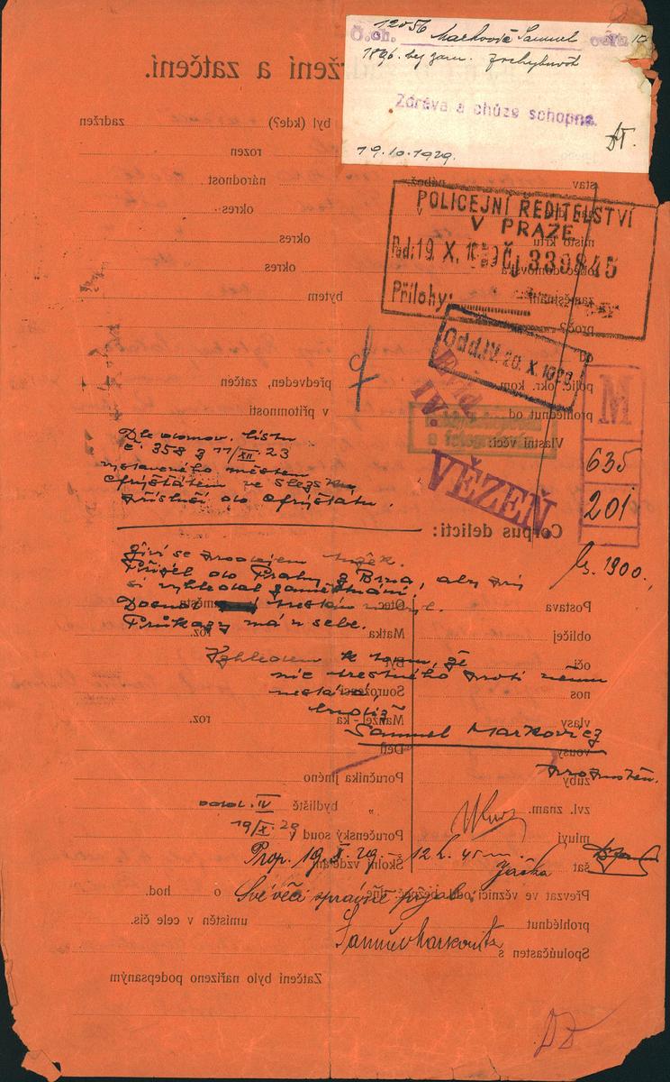 National archives Prague > Police Directorate Prague > 1931-1940 > M > Markowicz Samuel