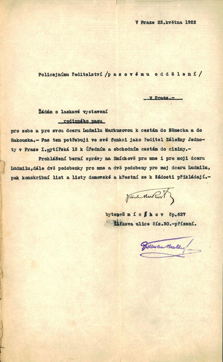 Markus Vítězslav: Žádost o vydání cestovního pasu