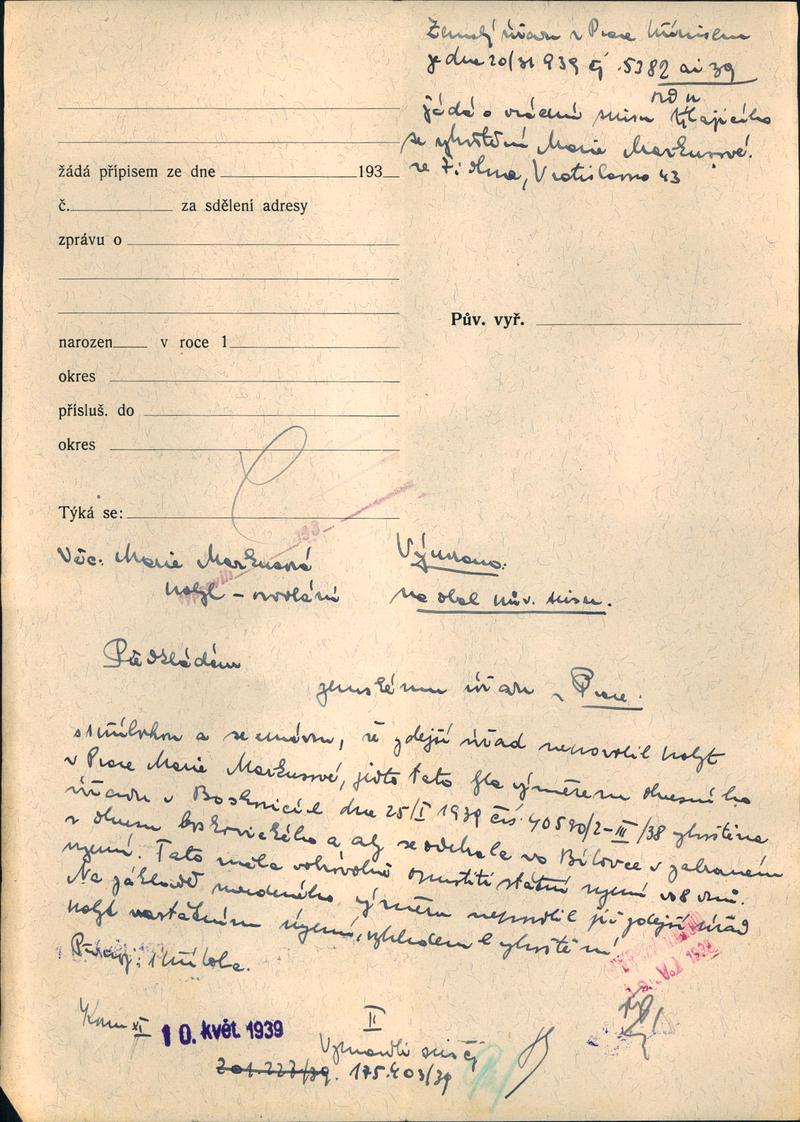 National archives Prague > Police Directorate Prague > 1931-1940 > M > Markusová Marie