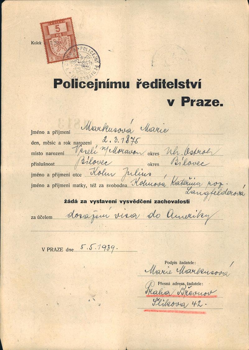 National archives Prague > Police Directorate Prague > 1931-1940 > M > Markusová Marie