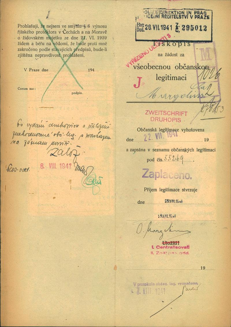 Margolius Otto: Žádost o vydání občanské legitimace