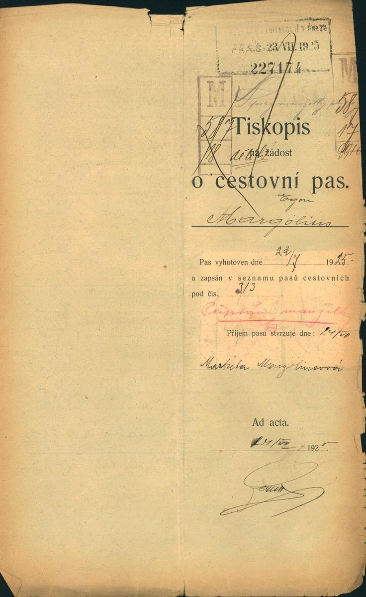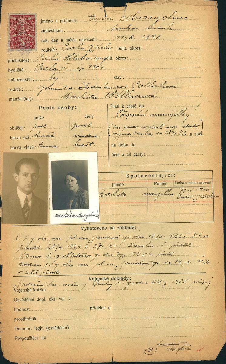 Margolius Egon: Žádost o připsání manželky do cestovního pasu