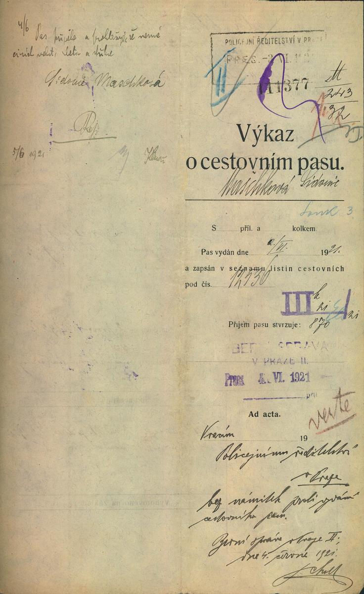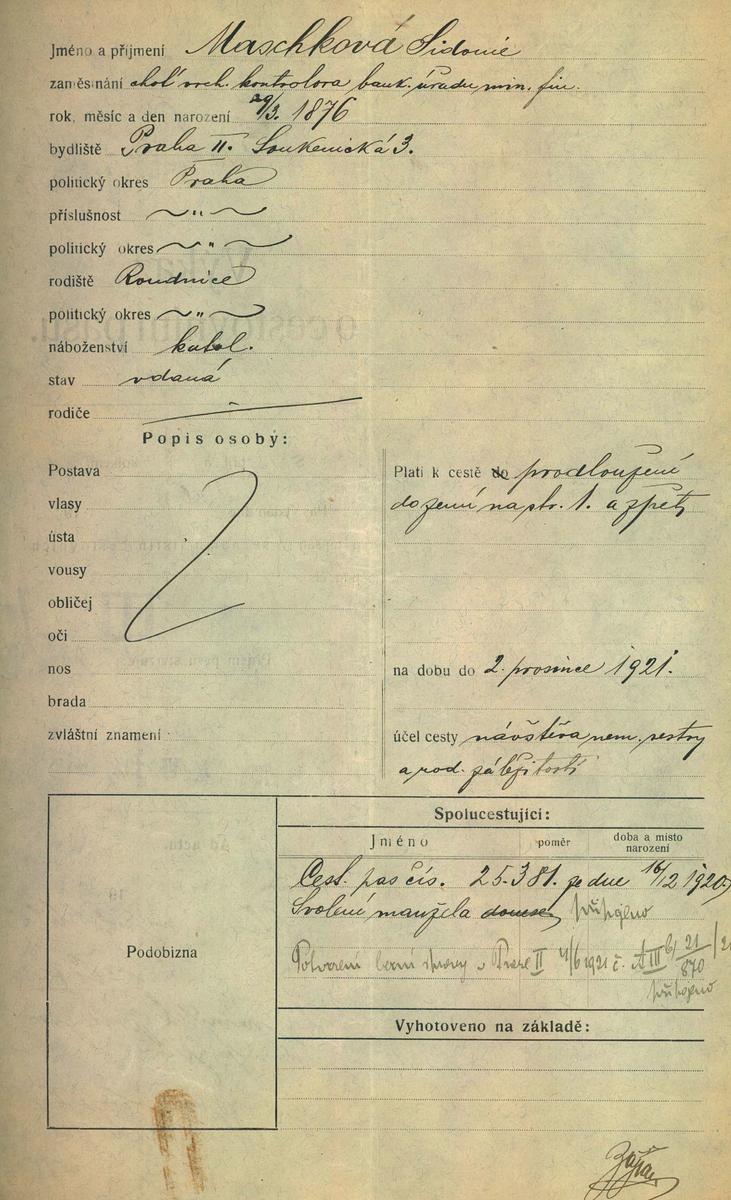 Maschková Zdenka: Žádost o prodloužení cestovního pasu