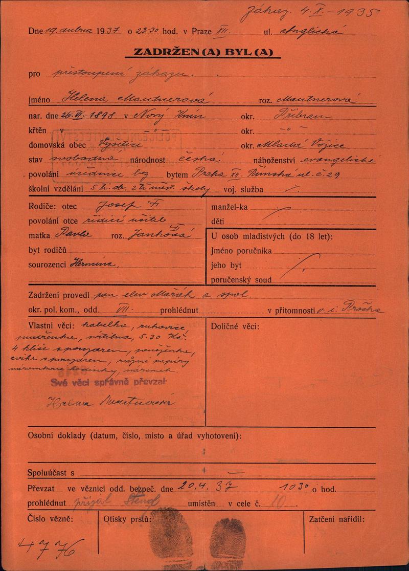 National archives Prague > Police Directorate Prague > 1941-1950 > M > Mautnerová Helena