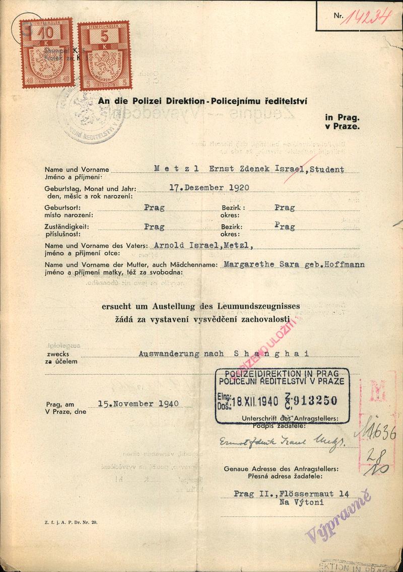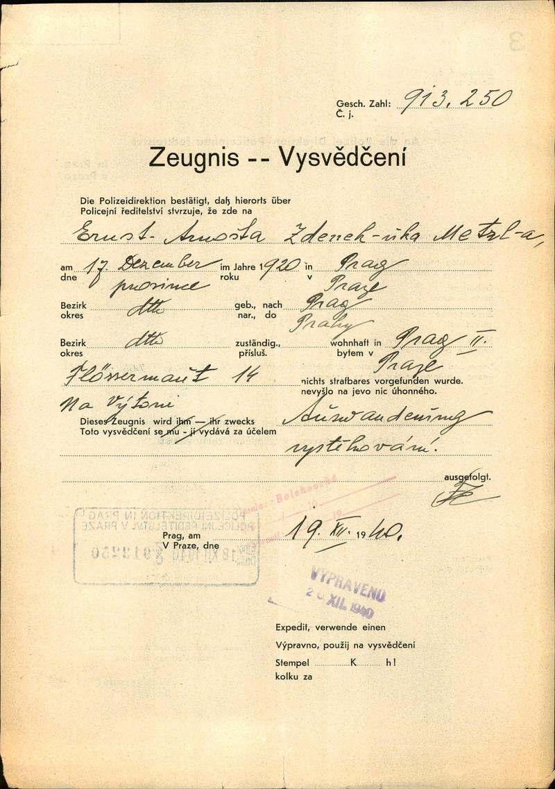 National archives Prague > Police Directorate Prague > 1941-1950 > M > Metzl Arnošt