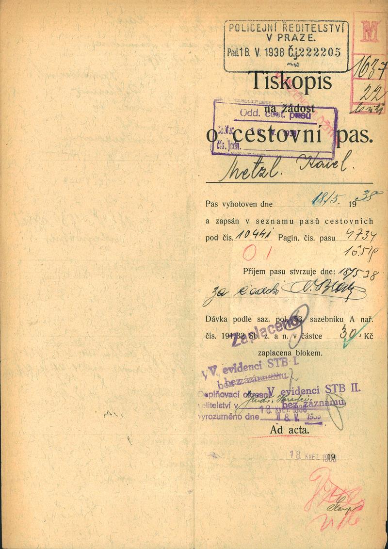 National archives Prague > Police Directorate Prague > 1941-1950 > M > Metzl Karel