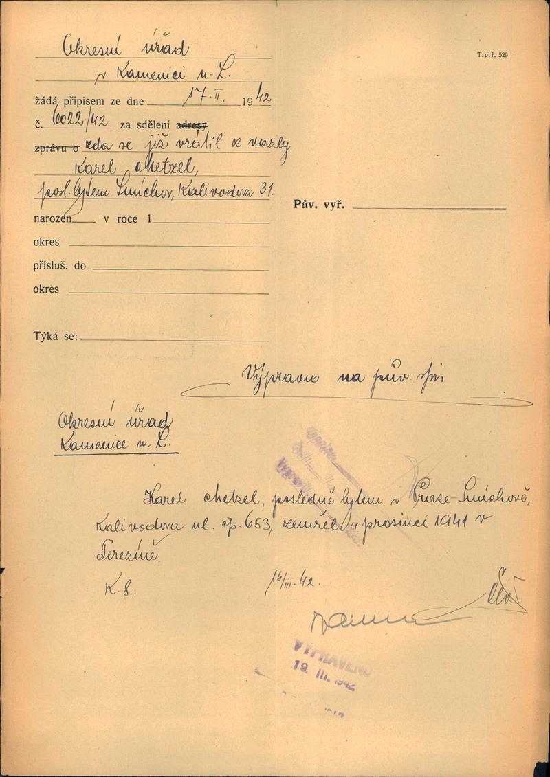 For publication purposes, contact the National Archives in Prague, where the original document is located. The document was digitized by the Terezín Initiative Institute, the Terezín Album project