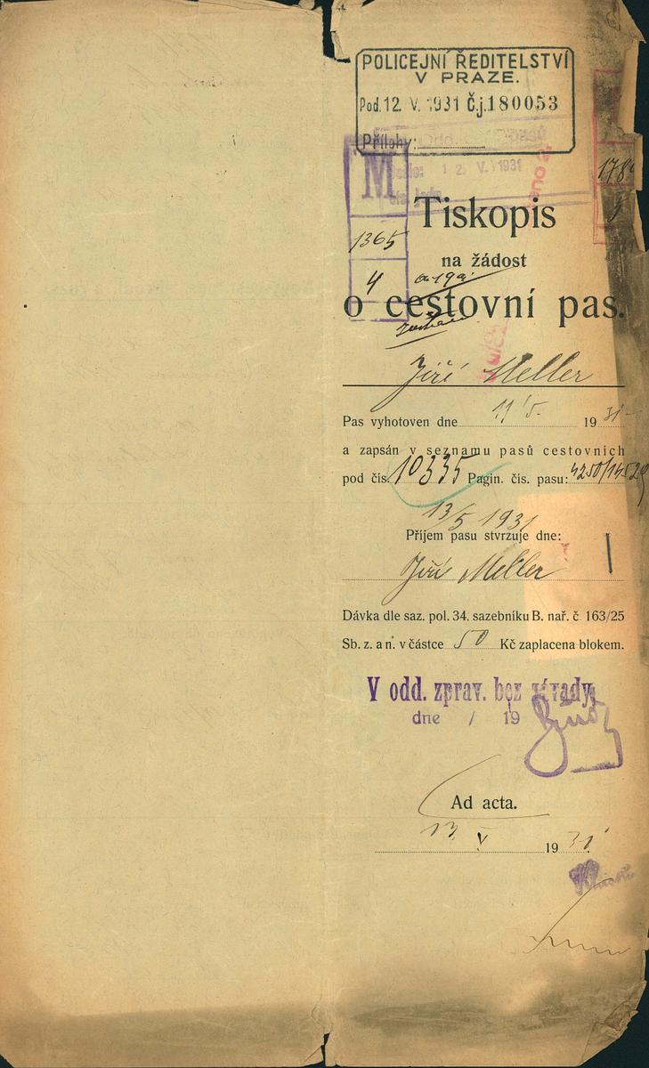 National archives Prague > Police Directorate Prague > 1941-1950 > M > Meller Jiří