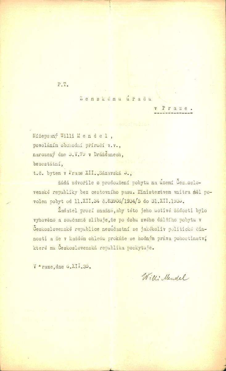 Mendel Vilém: Žádost o prodloužení povolení pobytu