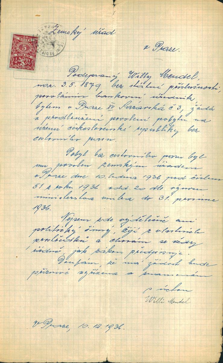Mendel Vilém: Žádost o prodloužení povolení pobytu
