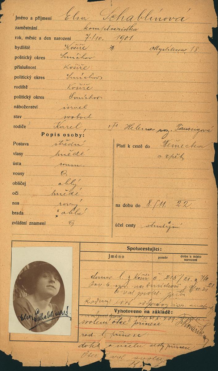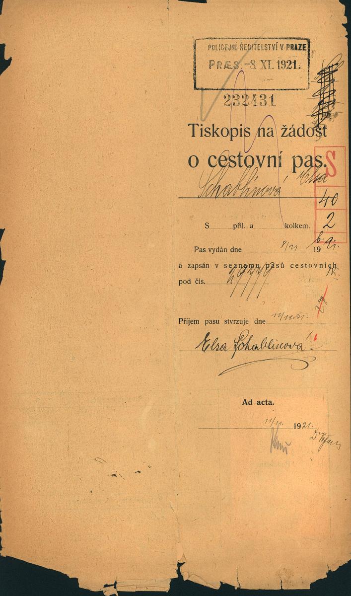Mändlová Elsa: Žádost o vydání cestovního pasu