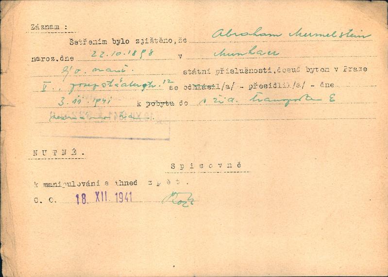 National archives Prague > Police Directorate Prague > 1941-1950 > M > Mermelstein Abraham