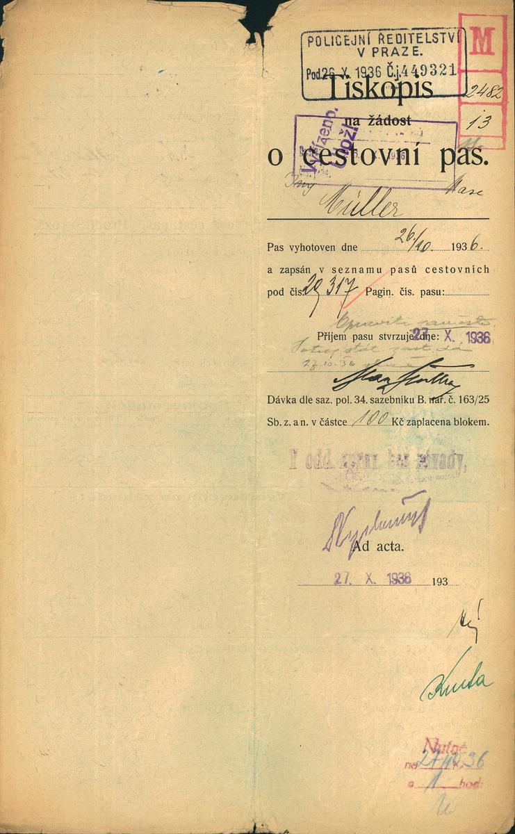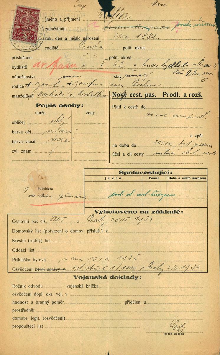 Müller Max: Žádost o prodloužení a rozšíření cestovního pasu
