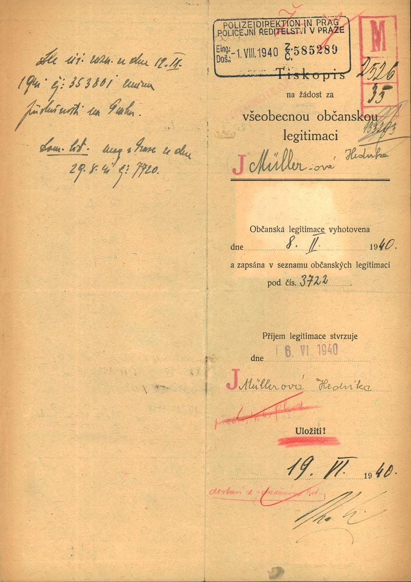 Müllerová Hedvika: Žádost o vydání občanské legitimace