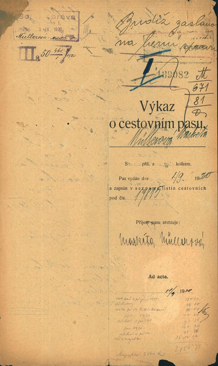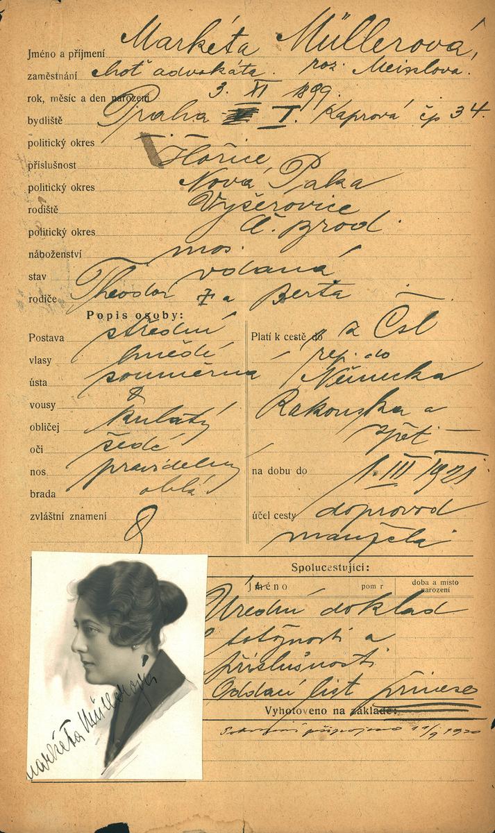 Müllerová Markéta: Žádost o vydání cestovního pasu