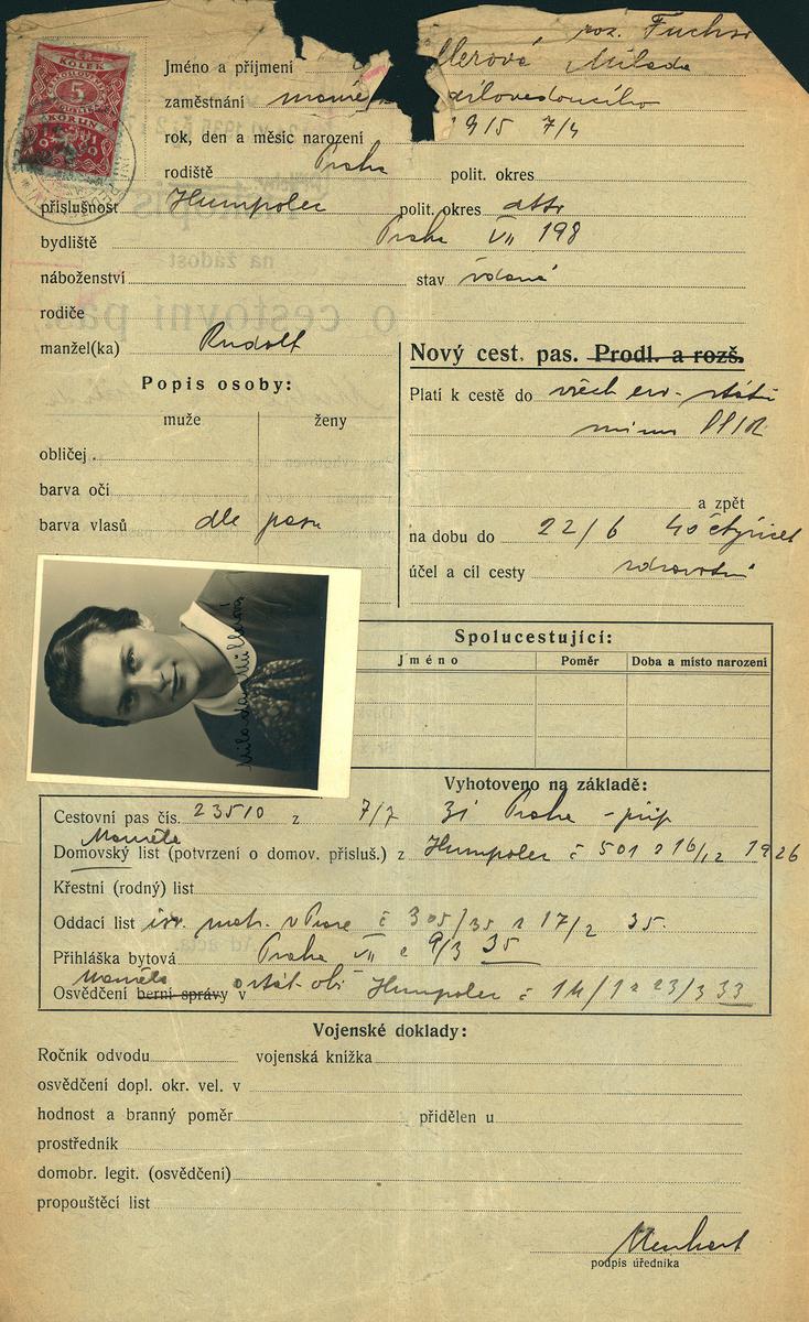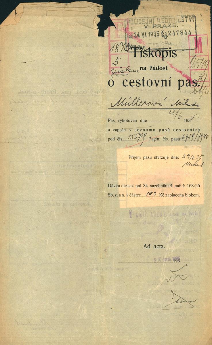 Müllerová Milada: Žádost o vydání cestovního pasu
