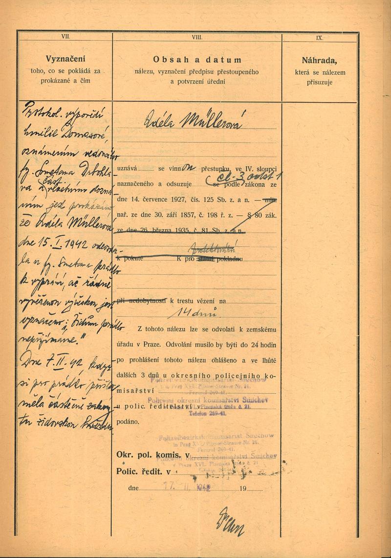 National archives Prague > Police Directorate Prague > 1941-1950 > M > Müllerová Adéla