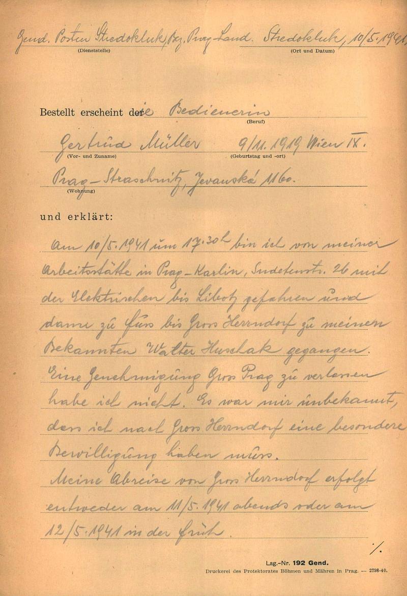 Müllerová Gertruda: Protokol o výslechu