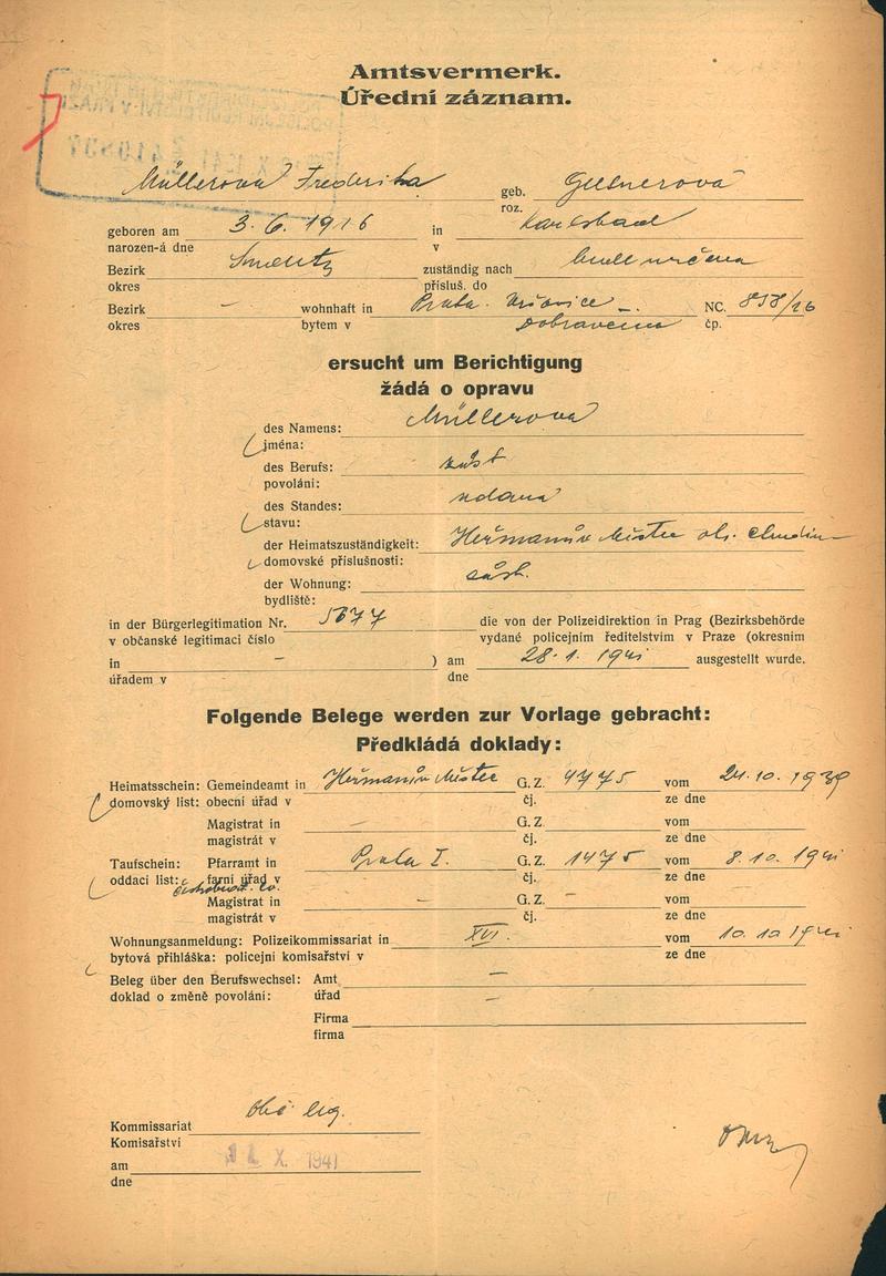 National archives Prague > Police Directorate Prague > 1941-1950 > M > Müllerová Frederika