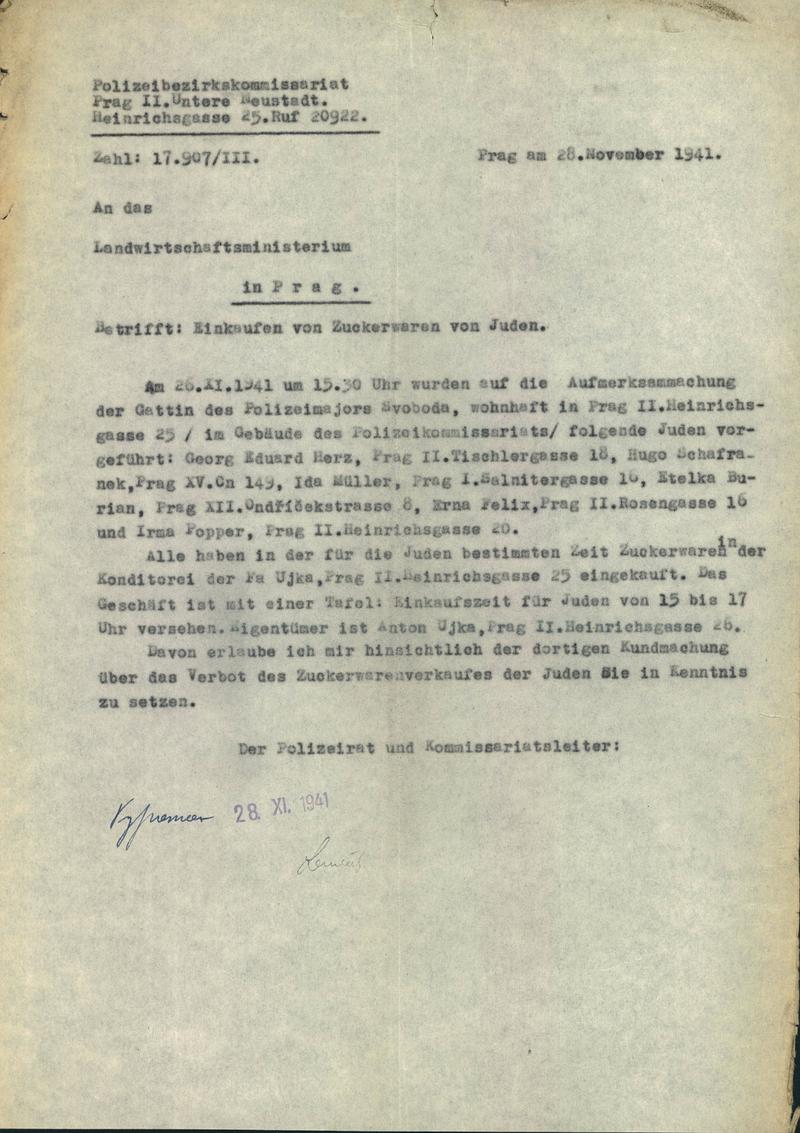 For publication purposes, contact the National Archives in Prague, where the original document is located. The document was digitized by the Terezín Initiative Institute, the Terezín Album project
