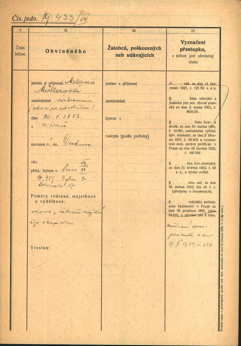 National archives Prague > Police Directorate Prague > 1941-1950 > M > Müllerová Melanie