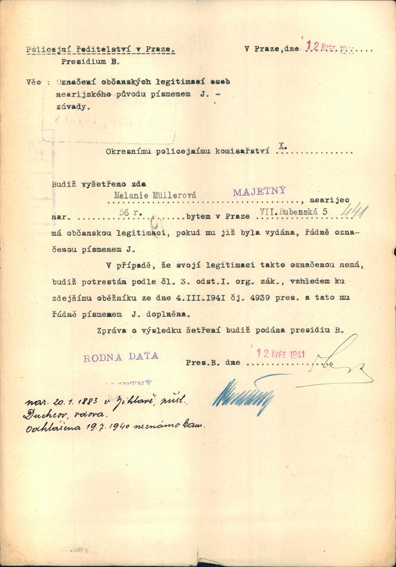 Müllerová Melanie: Označení občanských legitimací písmenem J