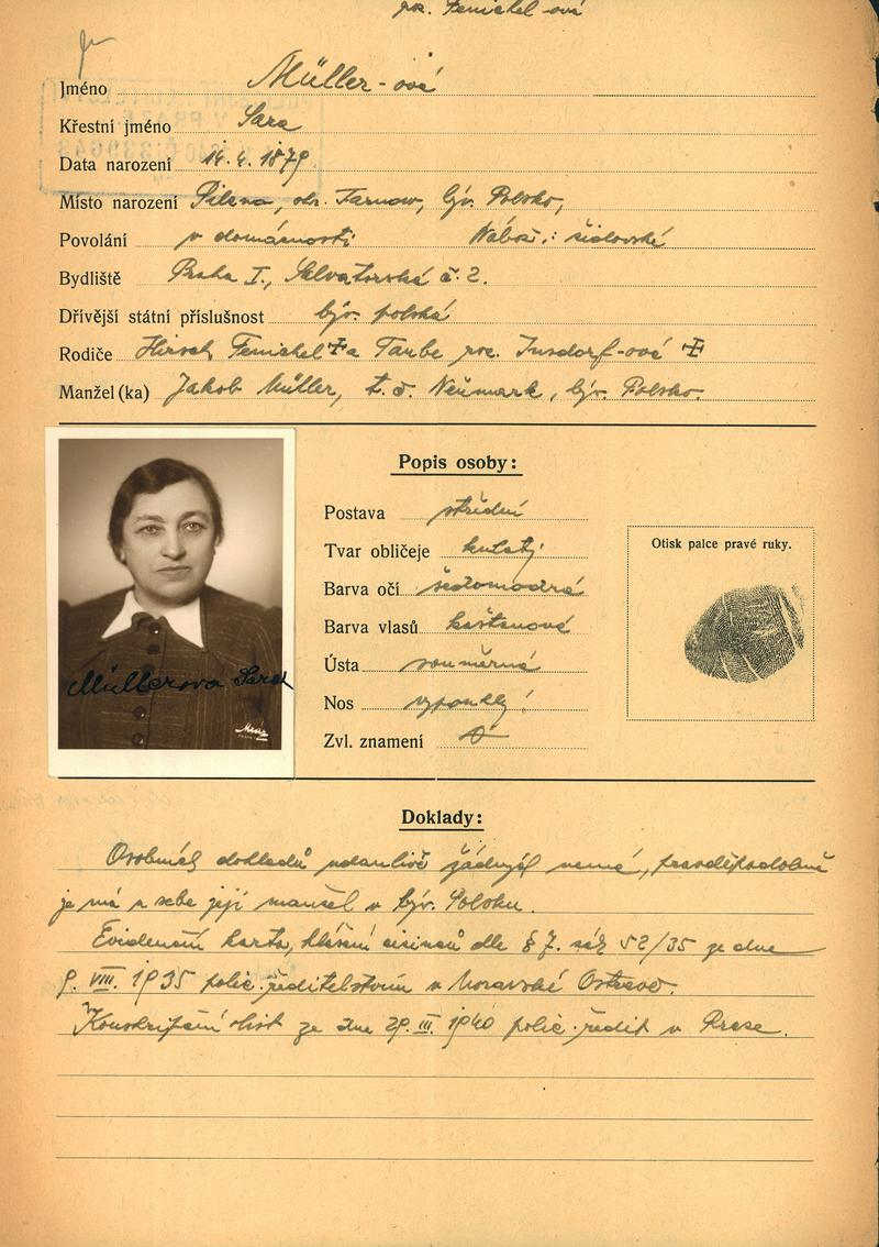 National archives Prague > Police Directorate Prague > 1941-1950 > M > Müllerová Sára