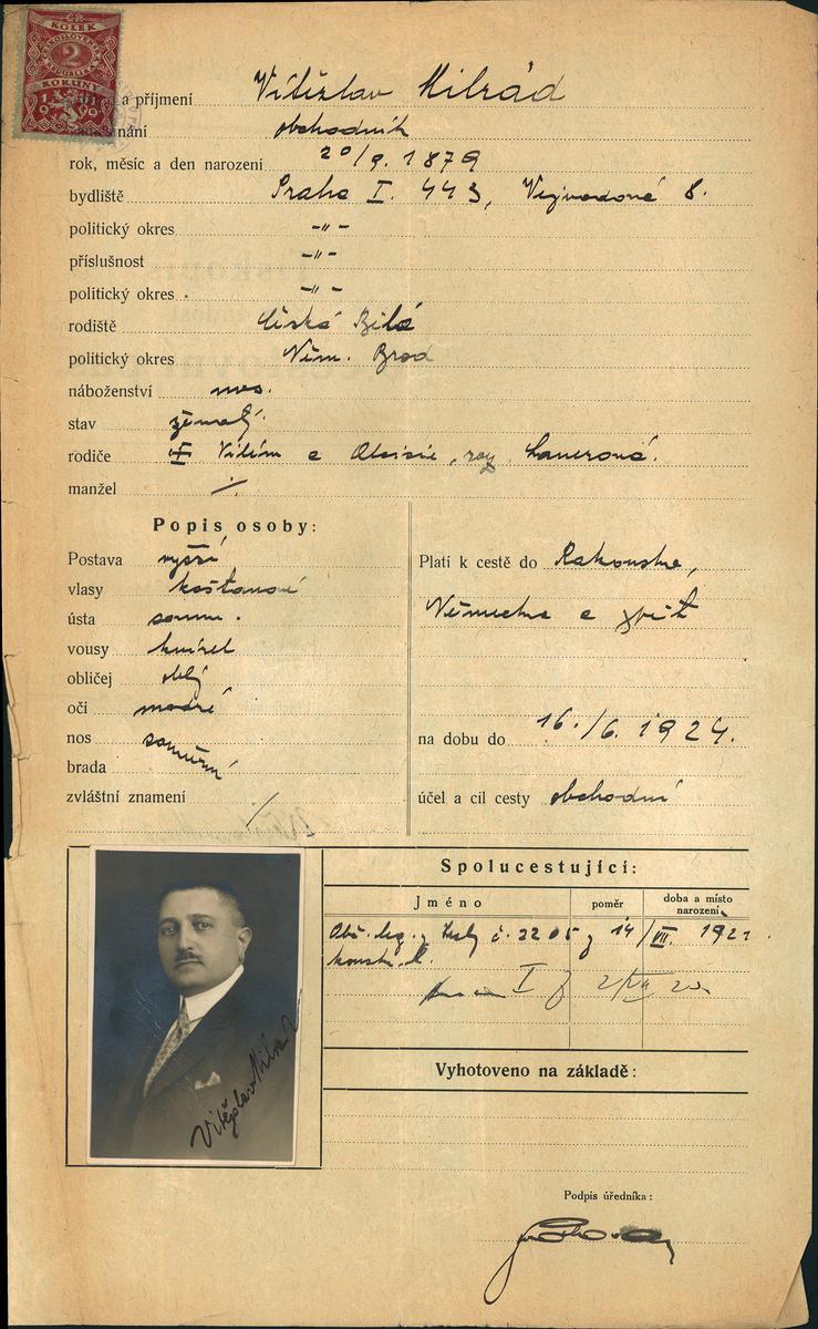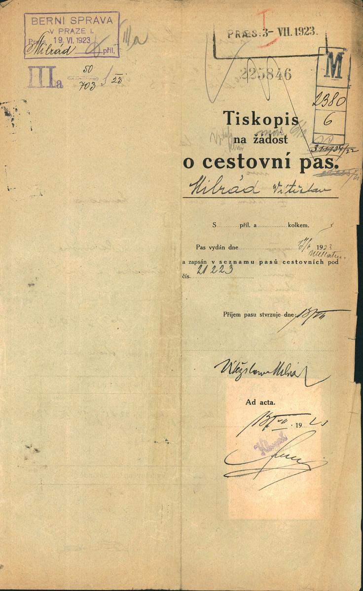 Milrád Vítězslav: Žádost o vydání cestovního pasu