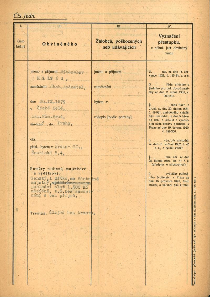 National archives Prague > Police Directorate Prague > 1941-1950 > M > Milrád Vítězslav