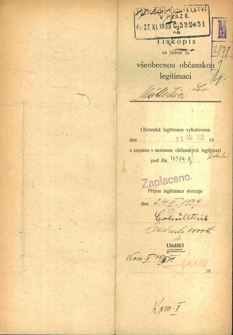 Mühlstein Leo: Žádost o vydání občanské legitimace