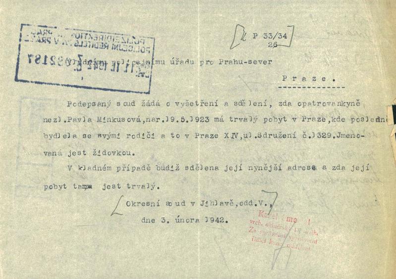 Minkusová Pavlína: Šetření o pobytu odtransportovaných Židů