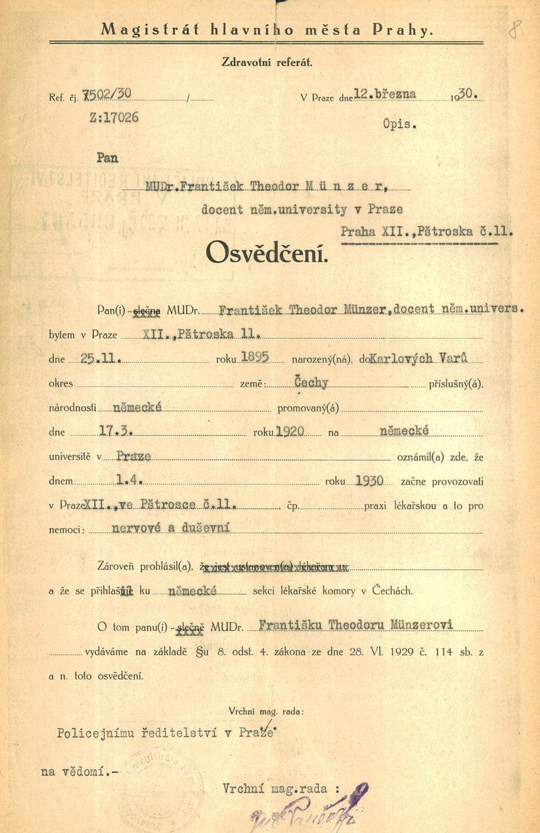 National archives Prague > Police Directorate Prague > 1941-1950 > M > Münzer František