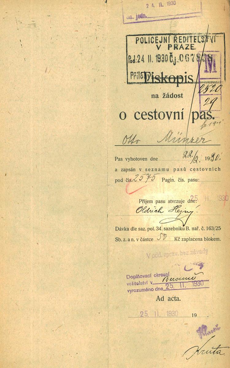 Münzer Ota: Žádost o prodloužení cestovního pasu