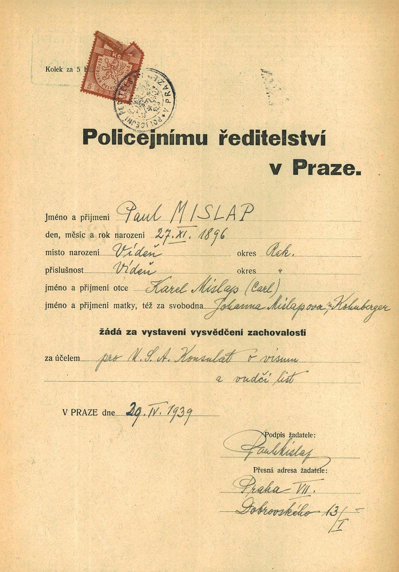 National archives Prague > Police Directorate Prague > 1941-1950 > M > Mislap Pavel